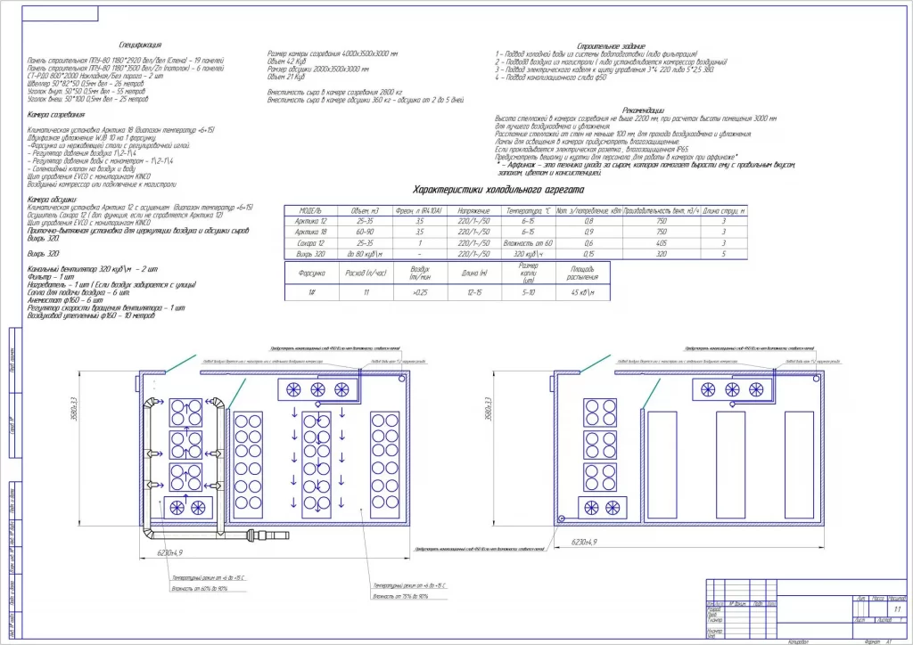 Типовое решение камеры созревания сыра и камеры обсушки сыров